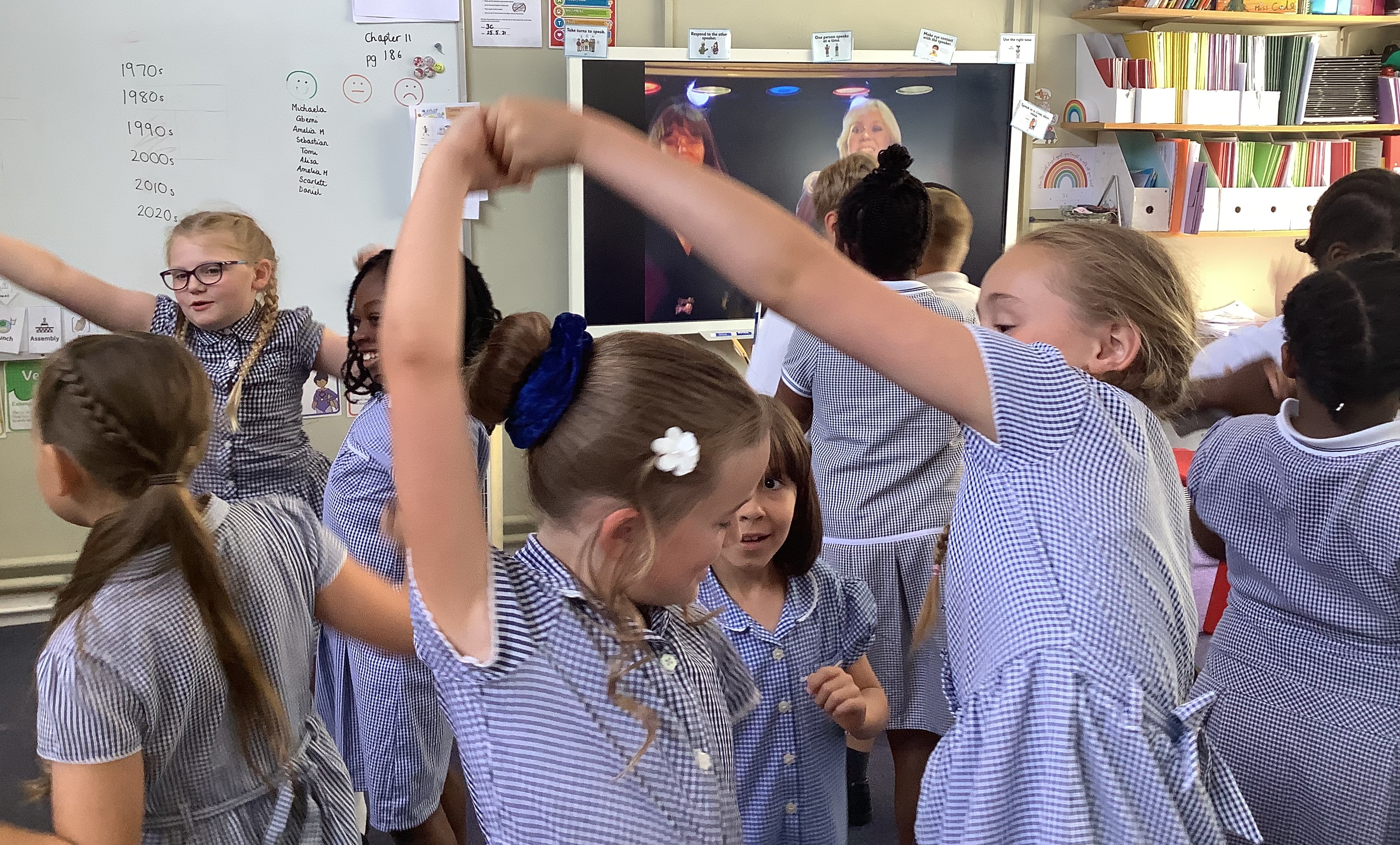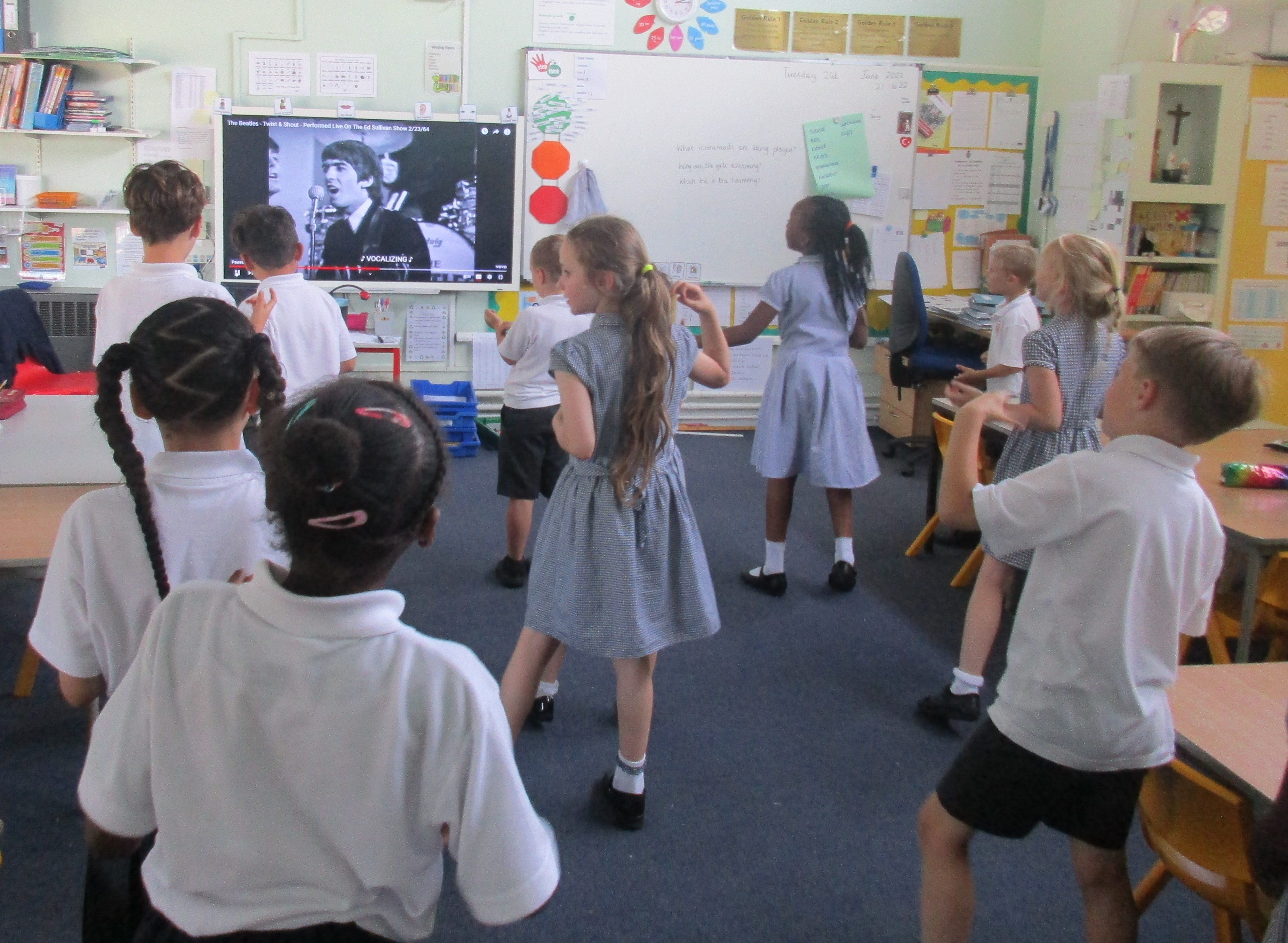 We celebrated World Music Day on Tuesday 21st June by listening and dancing to music through the decades. Foundation Stage started by dancing in the 1940s to Glen Miller's Big Band sound. Then we went through the 1950s with Elvis, then The Beatles, Abba, Technotronic and Whigfield before arriving in the years 2000+ with Pharell Williams. It was a lot of fun and we talked about the changes in music and fashion.
